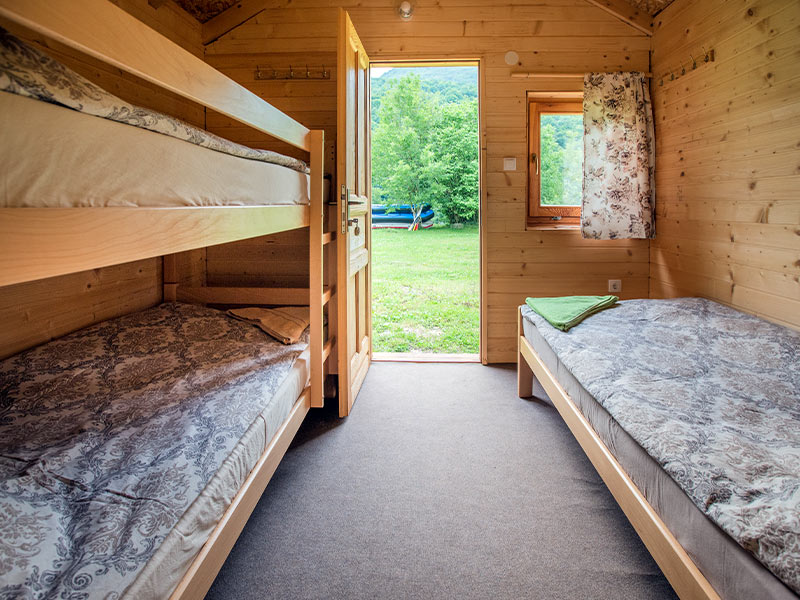 Smještaj je u kampu gdje imate mogućnost korištenja i tuš kabina. Ovi bungalovi su po strukturi dvokrevetni, trokrevetni, četvorokrevetni. U sklopu kampa se servira i domaća trpeza koja nikoga ne ostavlja ravndušnim.