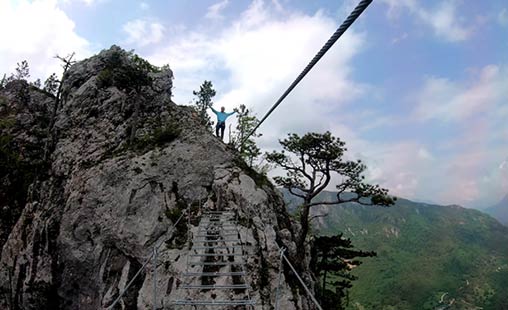 Ferrata je staza za penjanje pravljena od čeličnih sajli pričvršćenih za stijene, metalnih prečki i metalnih stepenica, postavljenih da premostite litice i izbočine koje bi bez njih bile neprelazne...