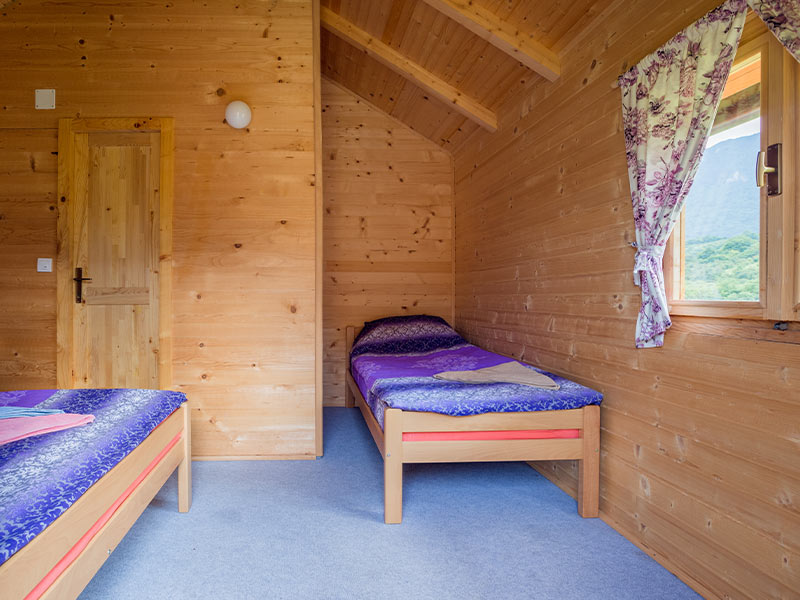 Smještaj je u kampu gdje imate mogućnost korištenja i tuš kabina. Ovi bungalovi su po strukturi dvokrevetni, trokrevetni, četvorokrevetni. U sklopu kampa se servira i domaća trpeza koja nikoga ne ostavlja ravndušnim.